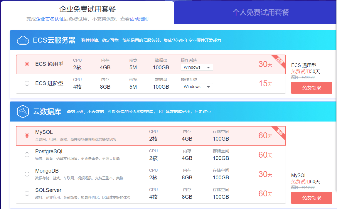 免费主机领取详细规则:1. 领取条件:完成对应实名认证;且未使用过华为云任何产品("使用"包括但不限于购买包年/包月产品、按需使用产品等行为)的客户(安全类产品:用户等级为V1及以上即可领取安全产品),每类产品每人限领一次;套餐资源每日领取数量有限,每日9:30开始领取,领完截止2. 免费资源说明:(1) 云服务器为通用计算型S3云华北-北京一资源,每款默认配置1个公网IP,40G系统盘,静态BGP带宽;套餐资源宽限期为0天,保留期为1天,免费试用云主机不支持退款(2) 云数据库为库华北-北京一资源,每款套餐默认配置40G系统盘,数据盘为100G普通IO;MySQL 5.7版本,SQL Server 2016WEB版,PostgreSQL 11.0版本,MongoDB 副本集3.4版本;云数据库套餐资源宽限期为0天,保留期为1天。(3) CDN免费体验包流量使用消耗完后,如您的业务还需要继续服务,业务计费将自动转为按需收费,流量包未使用部分超过有效期后自动作废。(4) 云中间件Redis为华东区东北区/华南区/华北区资源,每款默认配置2G单机版,套餐资源宽限期为0天,保留期1天。(5) EI产品为华北-北京一资源,每款套餐默认配置4核CPU,32GB内存,160G SSD盘,3个节点。免费试用套餐到期后,如您的业务还需要继续服务,业务计费将自动转为按需收费;云搜索服务为企业和个人用户提供免费的资源代金券。免费试用代金券有效期限为30天,代金券金额用完或到期后,如您的业务还需要继续服务,业务计费将自动转为按需收费,代金券未使用部分超过有效期后自动作废。3. 续费变更:续订变更套餐价格(含升配降配)以当期目录价为准,体验价在该场景下不适用,用户选择升配或降配包周期产品前,具体场景或解释说明,请您浏览阅读《变更资源费用说明》。4. 如您对免费试用活动有任何意见与建议,请至云社区进行反馈。5. 为保证活动的公平公正,华为云有权对恶意刷活动资源(“恶意”是指为获取资源而异常注册账号等破坏活动公平性的行为),利用资源从事违法违规行为的用户收回抽奖及奖励资格。6. 所有参加本活动的用户,均视为认可并同意遵守 《华为云用户协议》。免费主机申请地址:https://activity.huaweicloud.com/free_test/index.html
