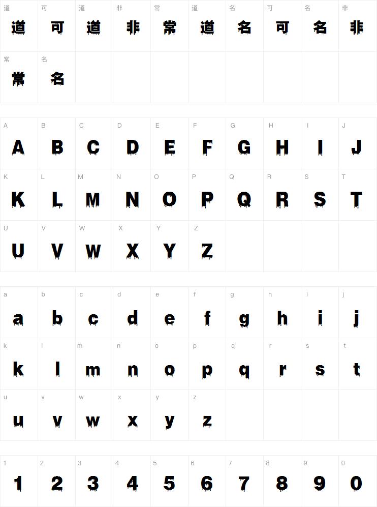 字玩哥特黑白无常 免费,汇取哥特艺术风格中的阴森、诡异、恐怖之感,字型中加入了不规则血滴元素,打造游戏恐怖氛围和紧张感,支持全场景除软件内嵌与LOGO外,其他可免费商用。