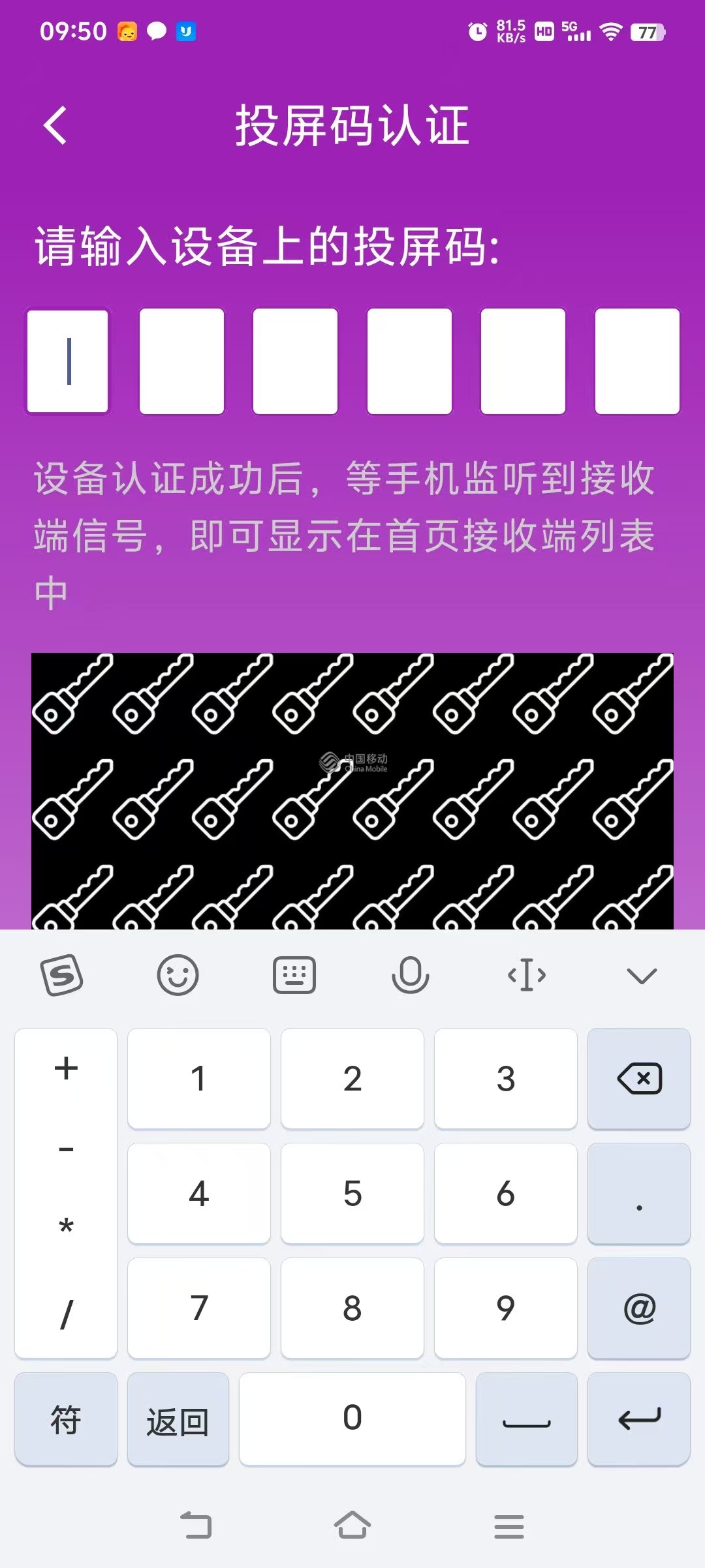 没关系旁边还有个投屏码在手机上输入,也可以用其他如微信直接扫码,然后会提示